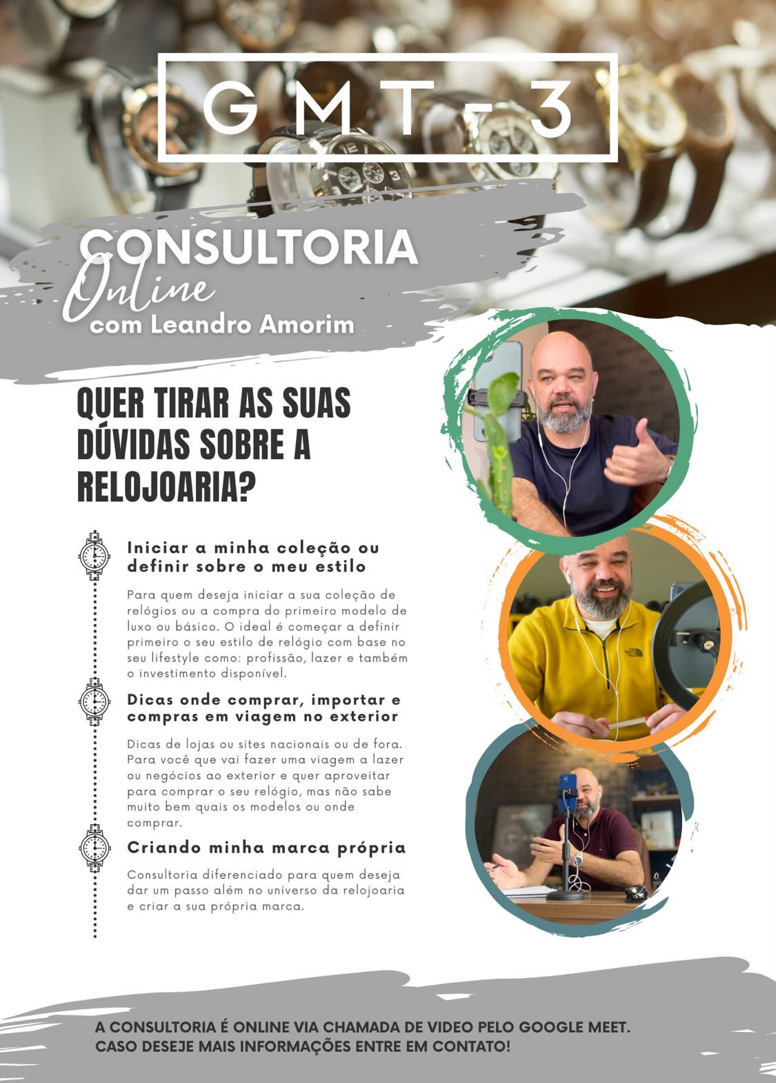 Foi assim que nasceu a Consultoria, um espaço exclusivo onde Leandro Amorim tem ajudado inúmeros entusiastas da relojoaria a aprofundar seus conhecimentos e tomar decisões com mais segurança.