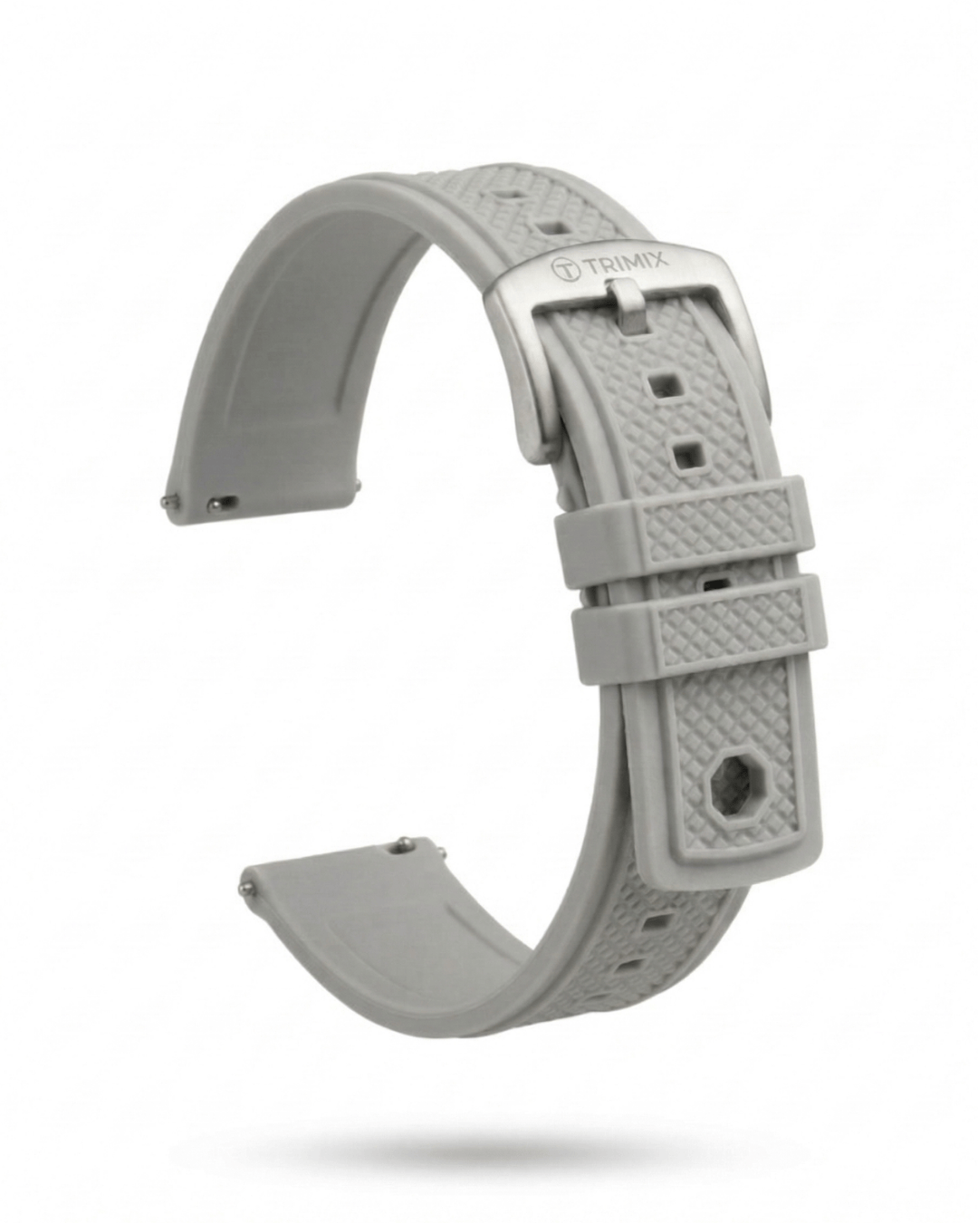 A pulseira de relógio TRIMIX Safe-Dive foi desenvolvida para quem encara o relógio como um instrumento de precisão. Mais encorpada e técnica, a versão Cinza traz a sobriedade do metal para o conforto da borracha vulcanizada, unindo estética industrial à segurança necessária para qualquer missão.